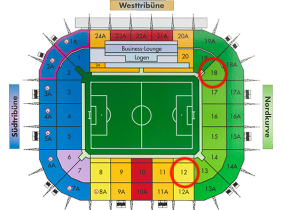 | Tickets: | 23 Stehplätze in der Nordkurve à 15 EUR und 30 Sitzplatzkarten im Block 12 Ost à 49 EUR. |