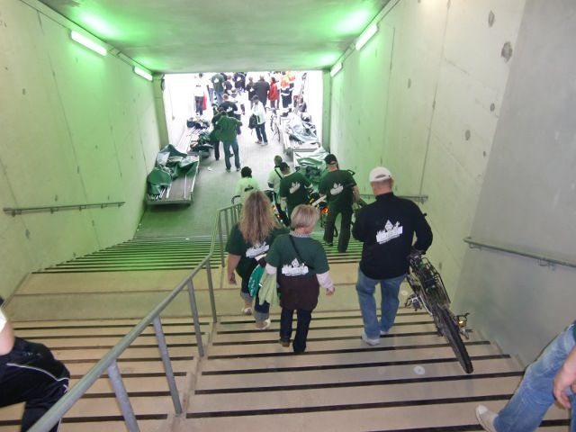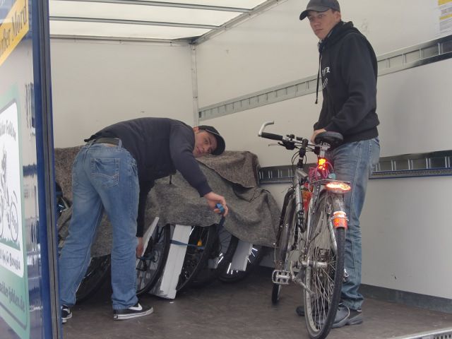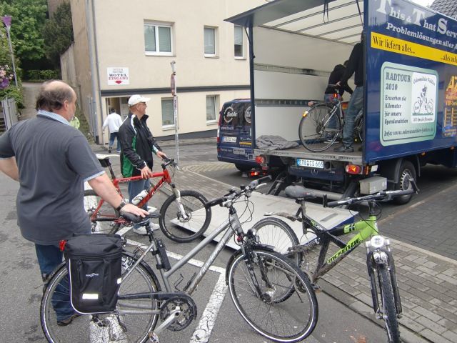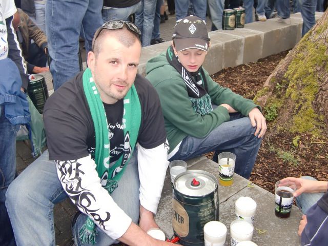 Nach einer langen Nacht im“Markt 26“, einer Disco-Kneipe in der Altstadt, die wir gut geräuchert, halbtaub und trunken verließen, frühstückten wir diesmal etwas später. Danach kam unser großer Abhol-Service aus dem Hause Dziatkowski (Firma This & That – wir liefern alles... ...außer Mord), der alle Räder im Dorint und KuNi verlud. Diese wurden dann an den Borussia-Park gefahren, wo wir einige davon nachmittags benötigten.