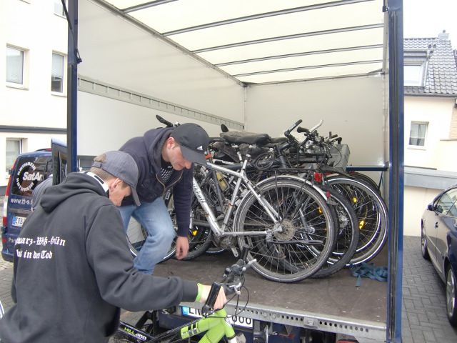 Nach dem Spiel wurden nochmals alle Räder verladen, nein sogar noch zweimal, denn Bodo's Rad musste ja wieder raus, da es von Kerstin und Silvia im Wagen mit nach Nauheim genommen wird. Danach gingen sie ab in Richtung Heimat. Michael verabschiedete sich auch wieder und fuhr zum zweiten Mal nach Hause.