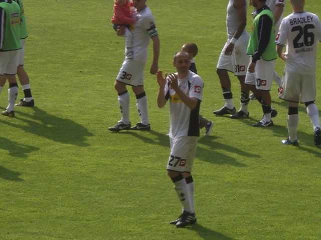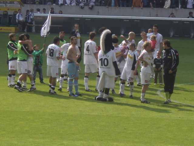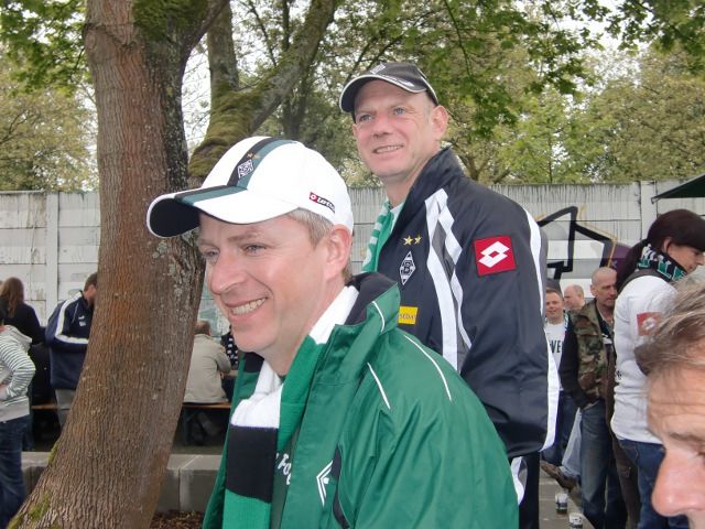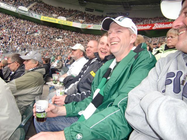Schnell die Räder noch draußen festgebunden, machten wir uns auf unsere Plätze und erlebten nach schwacher erster Halbzeit noch ein gutes und gerechtes 1:1. Beeindruckend war die Verabschiedung von Oliver Neuville, der sowohl von den Borussen- als auch den Leverkusen-Fans frenetisch gefeiert wurde!
