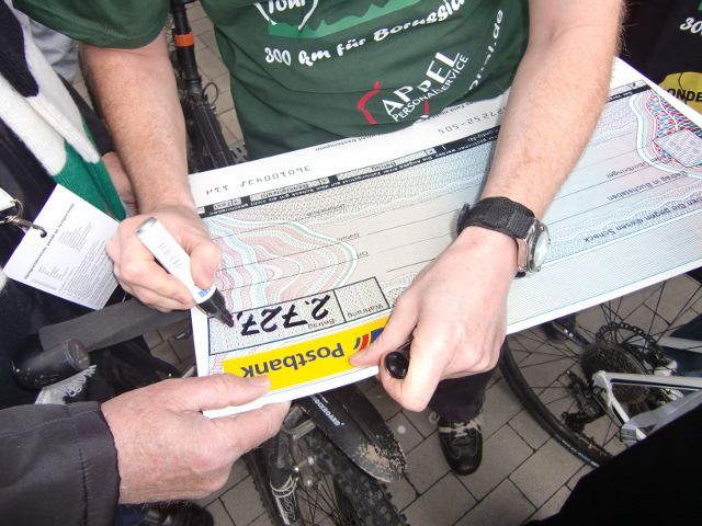 Heute war der Belohnungs-Tag für alle Radtour-Teilnehmer: zum Einen musste nicht mehr gestrampelt werden, zum Anderen stand der große Tag der Scheckübergabe vor der Nordkurve an!