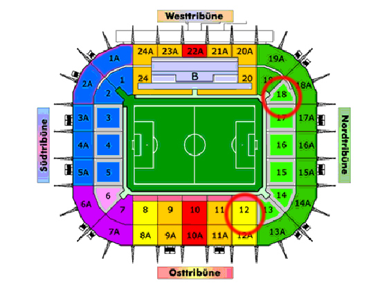 | Tickets: | 25 Stehplätze Nordkurve, Block 18, à 15,00 EUR und 20 Sitzplätze im Block 13A Nord à 28,00 EUR |