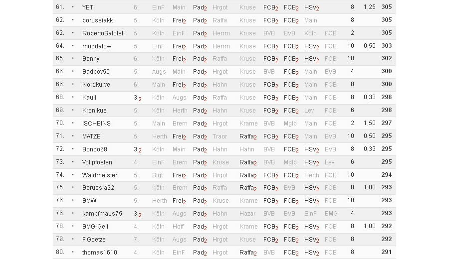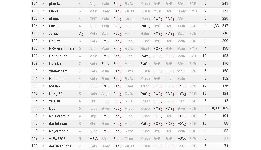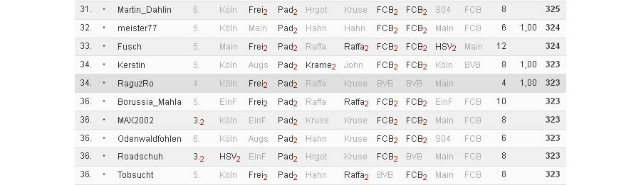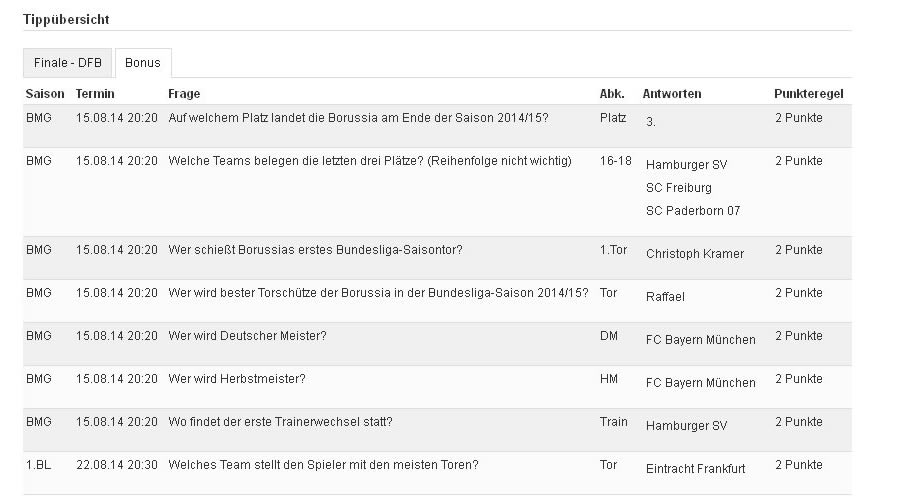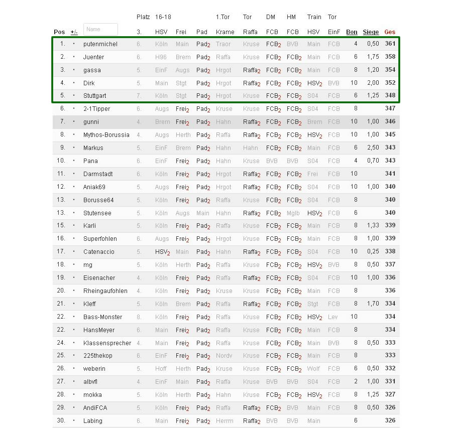 Ergebnis des Bundesliga-Tippspieles 2014/15![]()