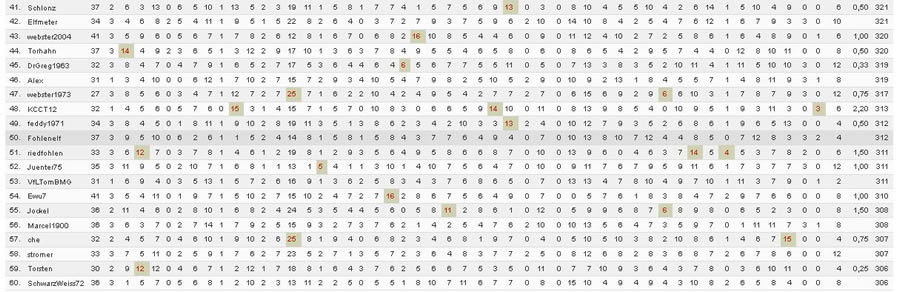 Den Sieg holte sich hierbei Markus Götz mit insgesamt 55 Punkten (Tabelle siehe unten)!