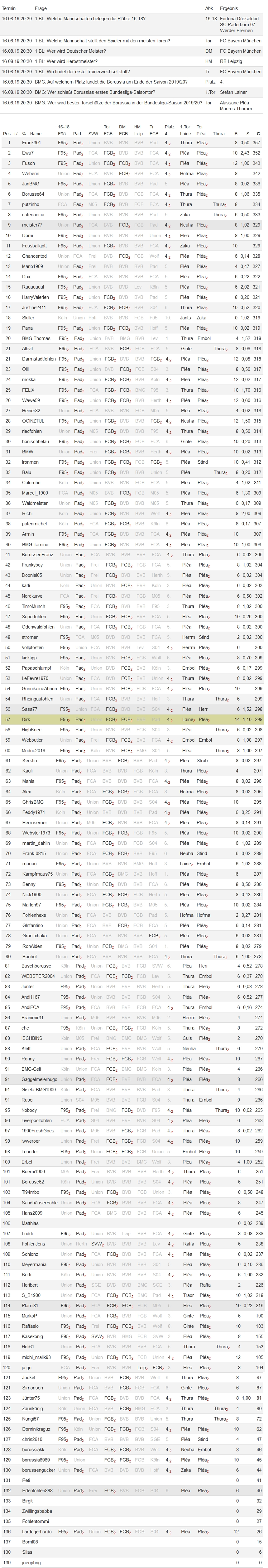 Ergebnis des Bundesliga-Tippspieles 2019/20![]()