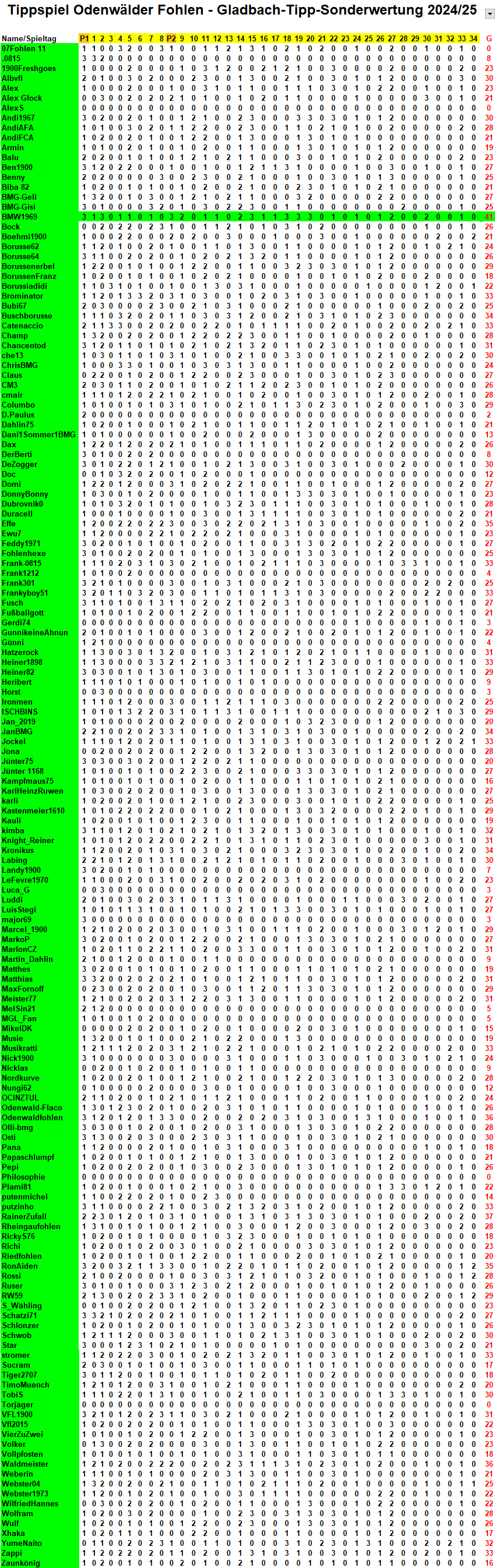 Ergebnis des Bundesliga-Tippspieles 2024/25![]()