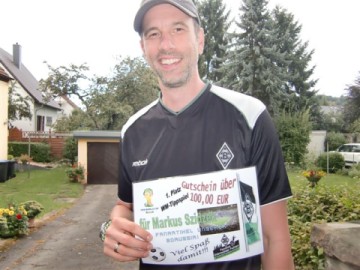 Der WM-Tippsieger, Markus Szidzek, mit seinem Tippgewinn,