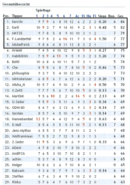 Ergebnis des WM-Tippspieles 2006